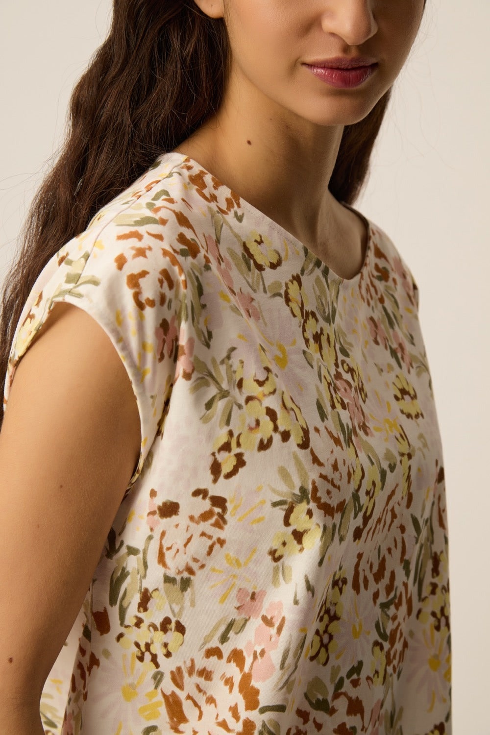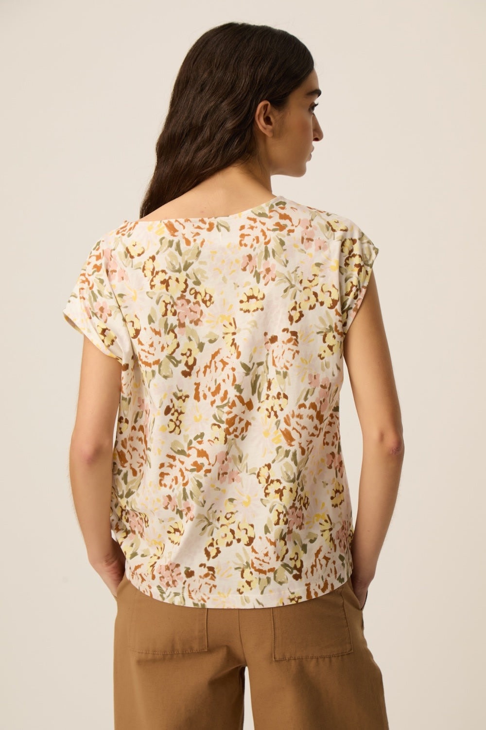 T-shirt Des Petits Hauts Kalabs fleuri verveine jaune ocre, vert multi