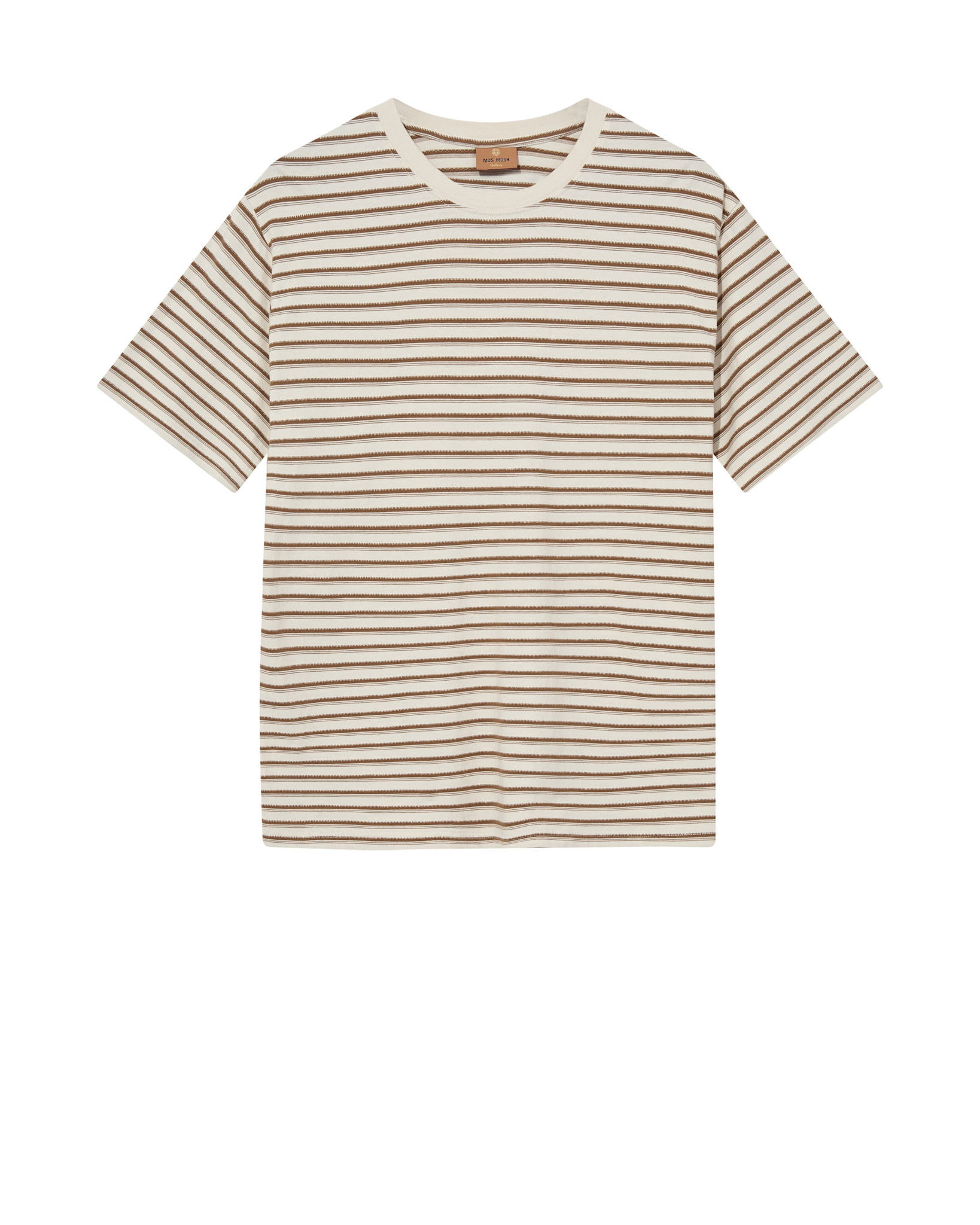 T-shirt Mos Mosh Gallery Dani Stripe rayé écru & brun coconut