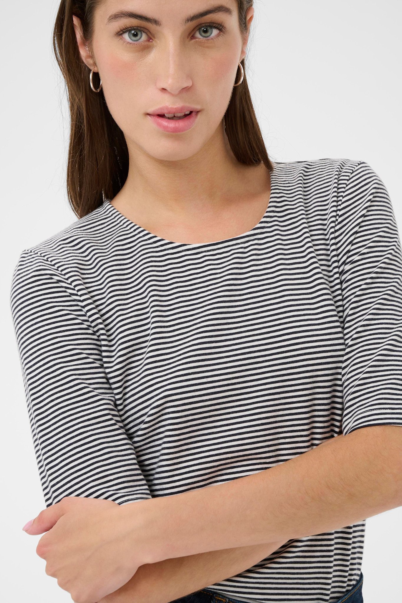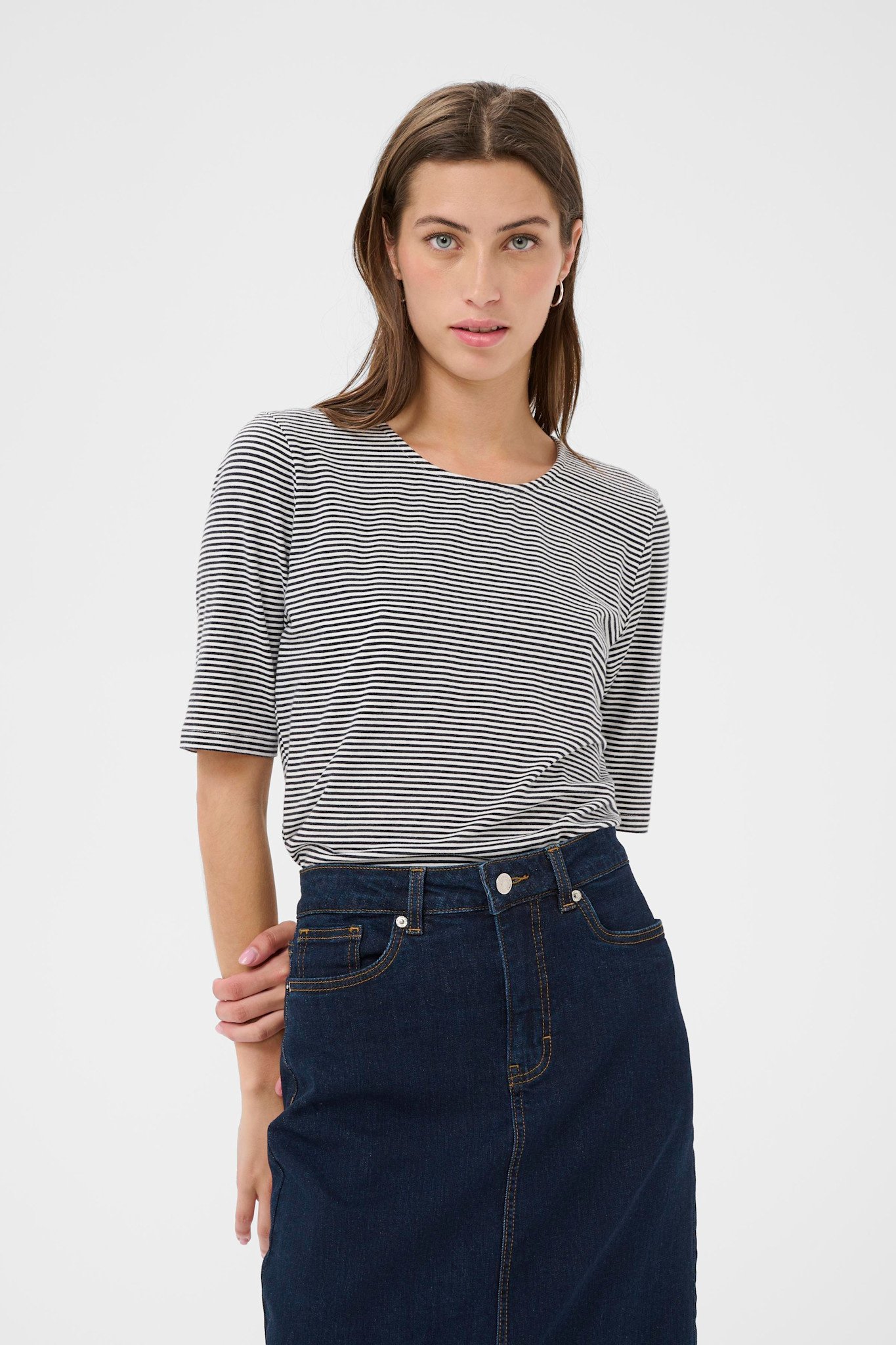 T-shirt Part Two Nemi à manches 3/4 rayé bleu marine & blanc