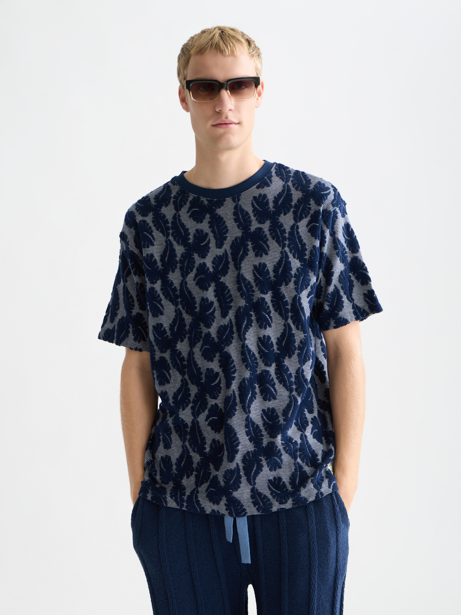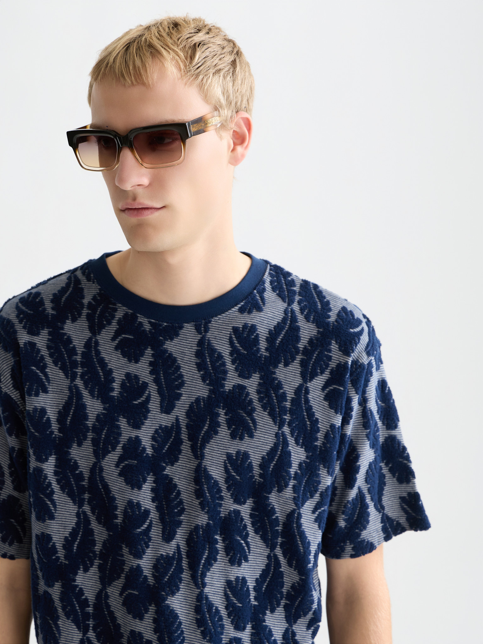 T-shirt Scotch & Soda imprimé feuille bleu marine & blanc