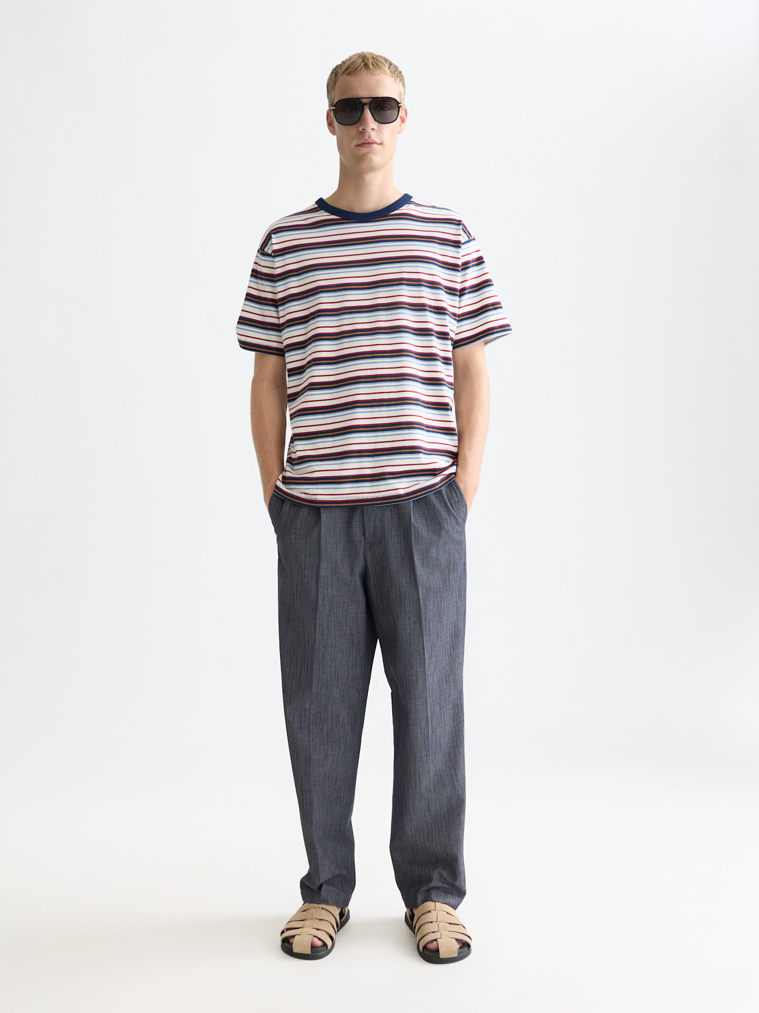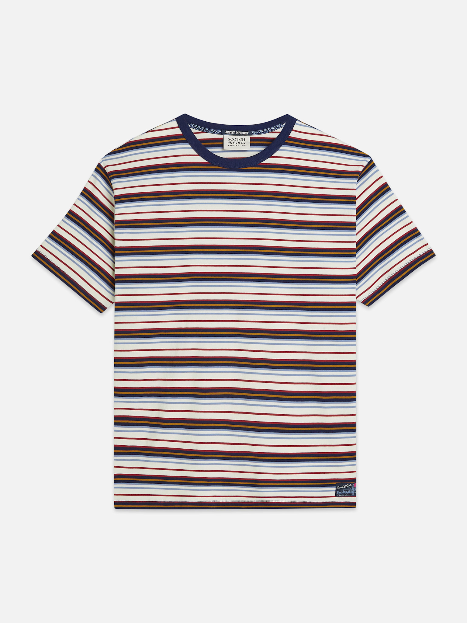T-shirt Scotch & Soda rayé bleu marine, rouge, caramel et blanc