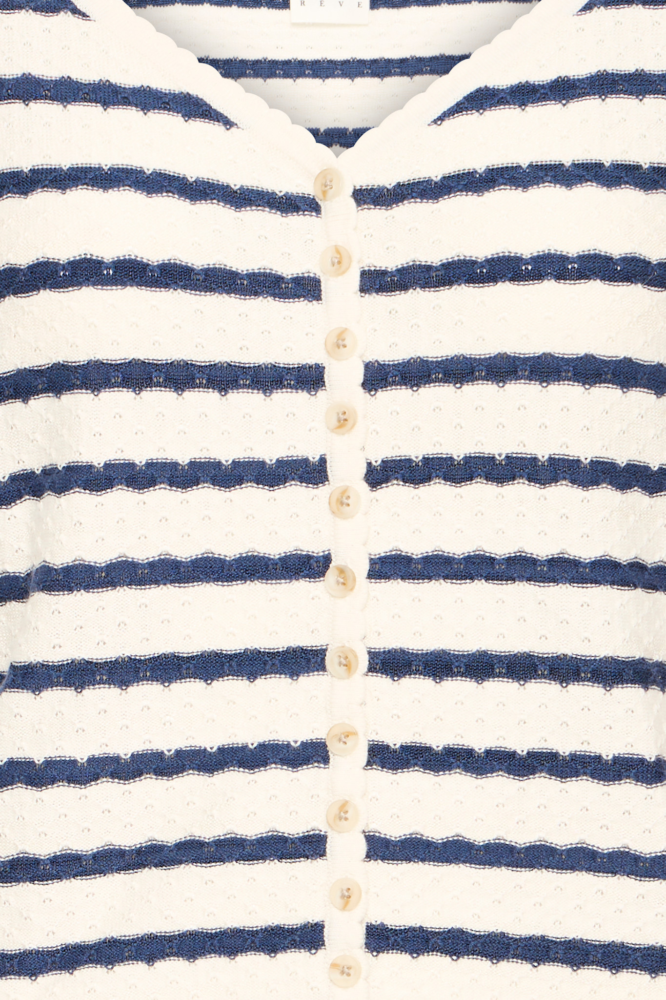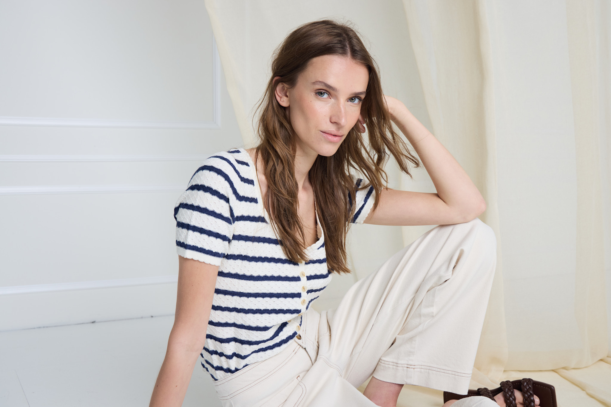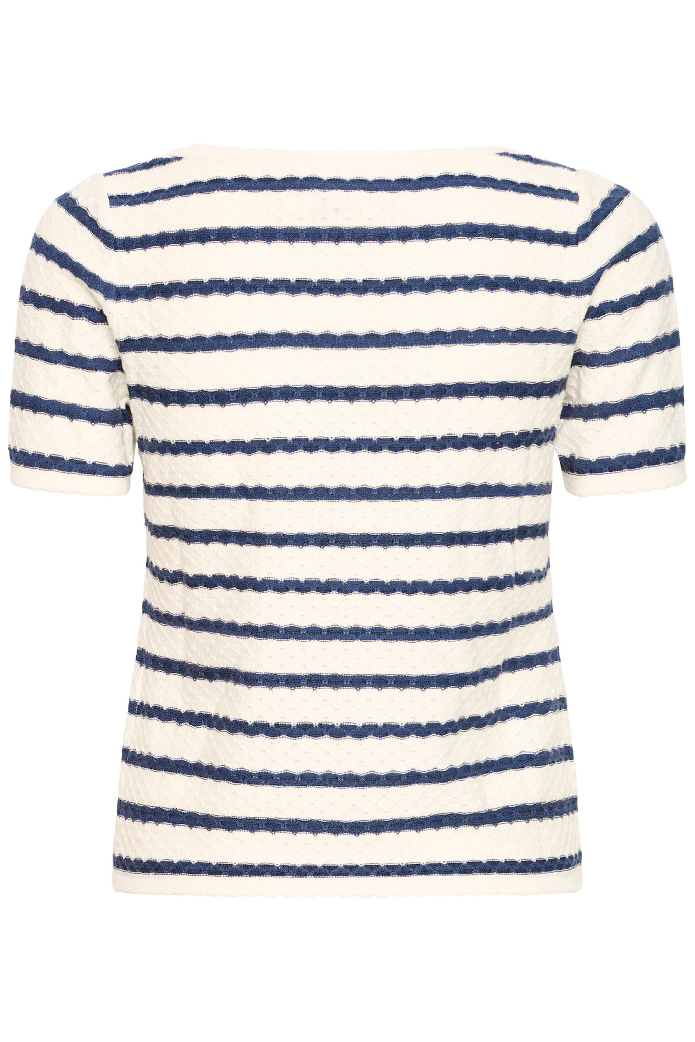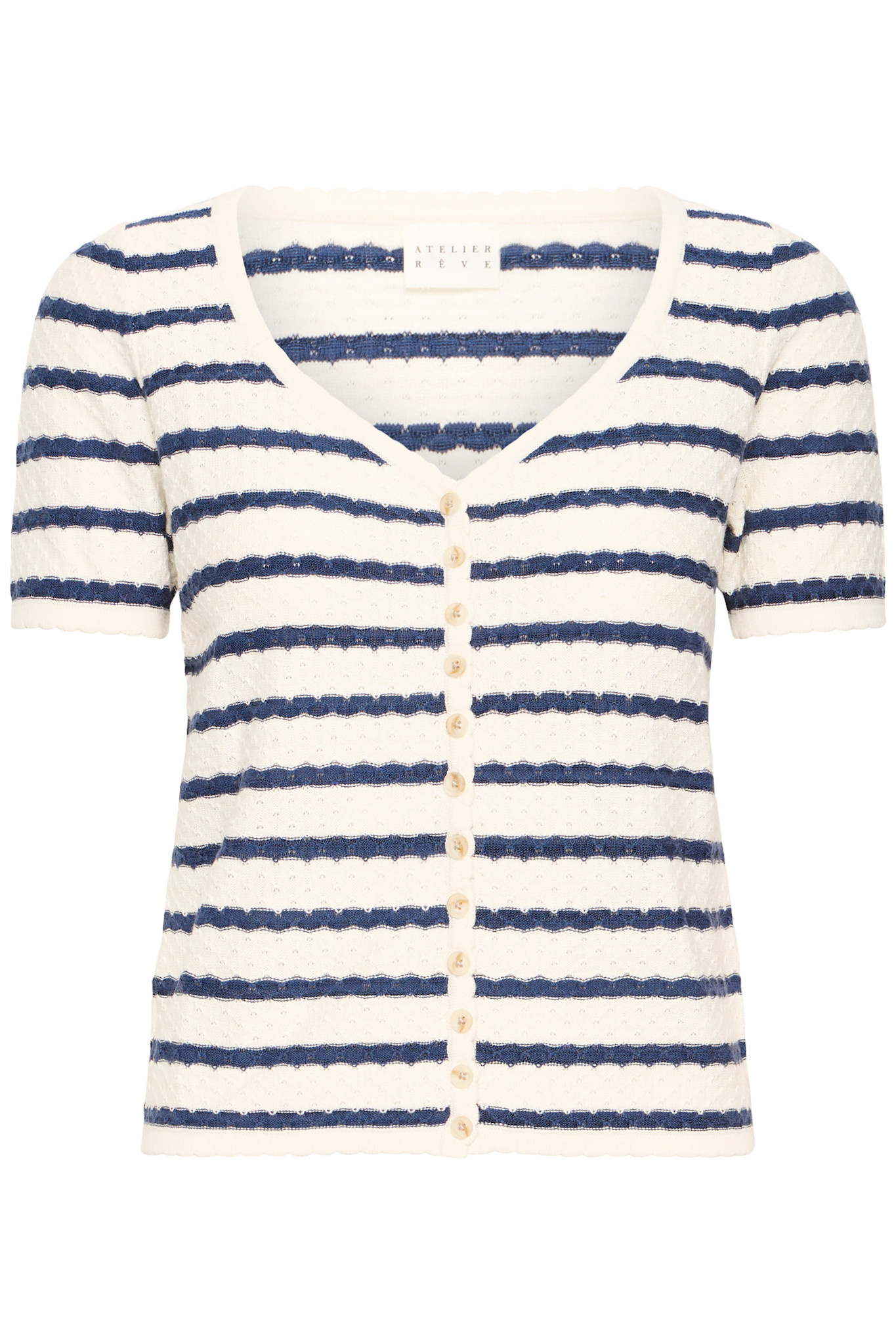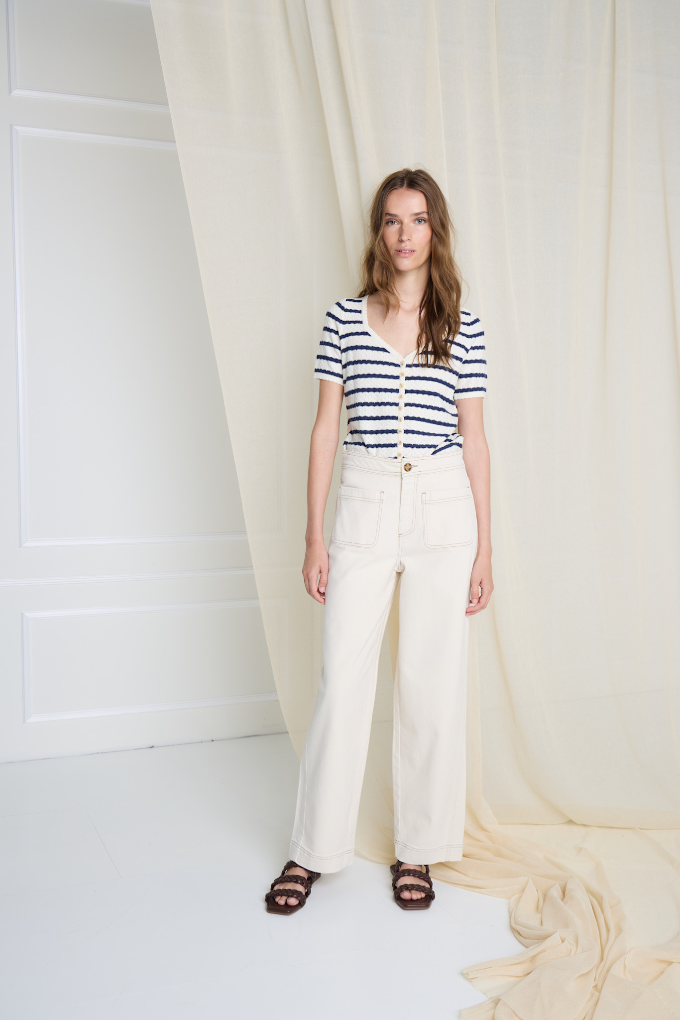Tricot Atelier Rêve Vilma à manches courtes écru rayé bleu indigo