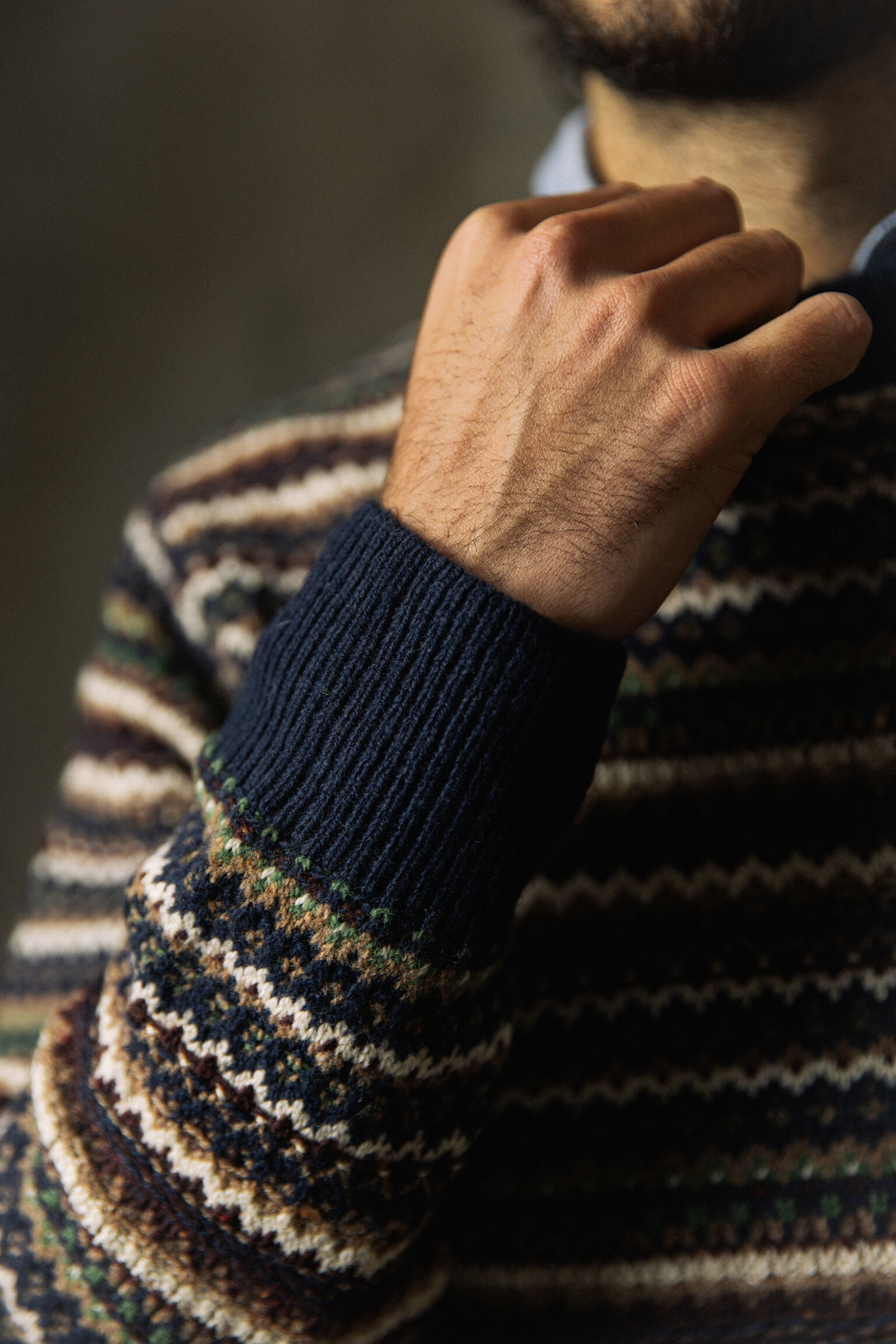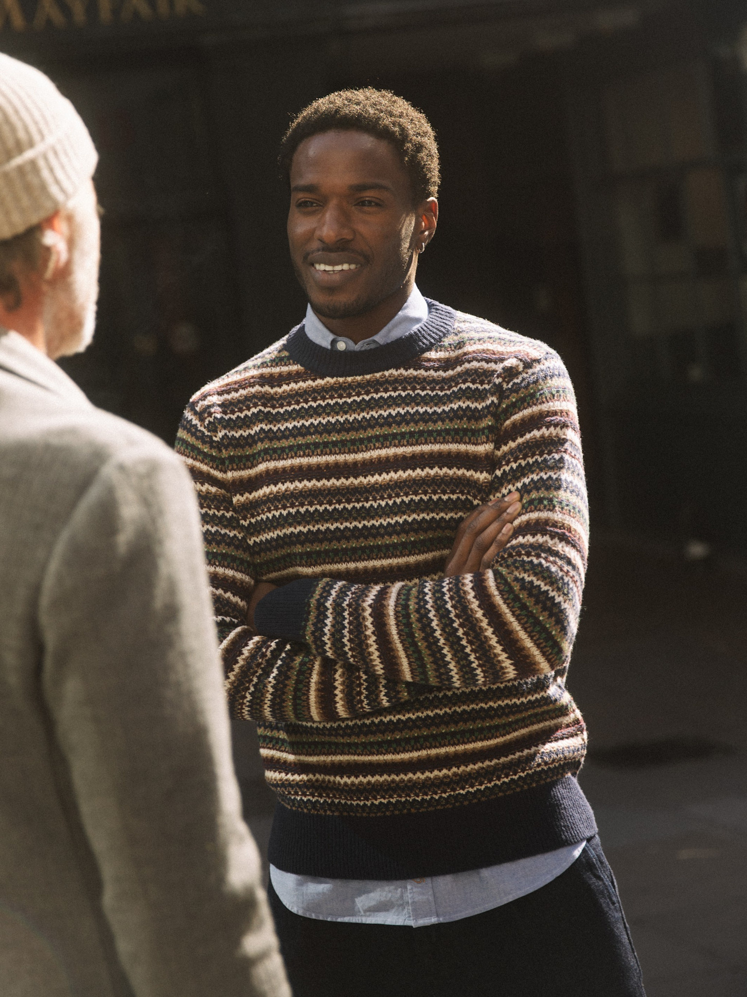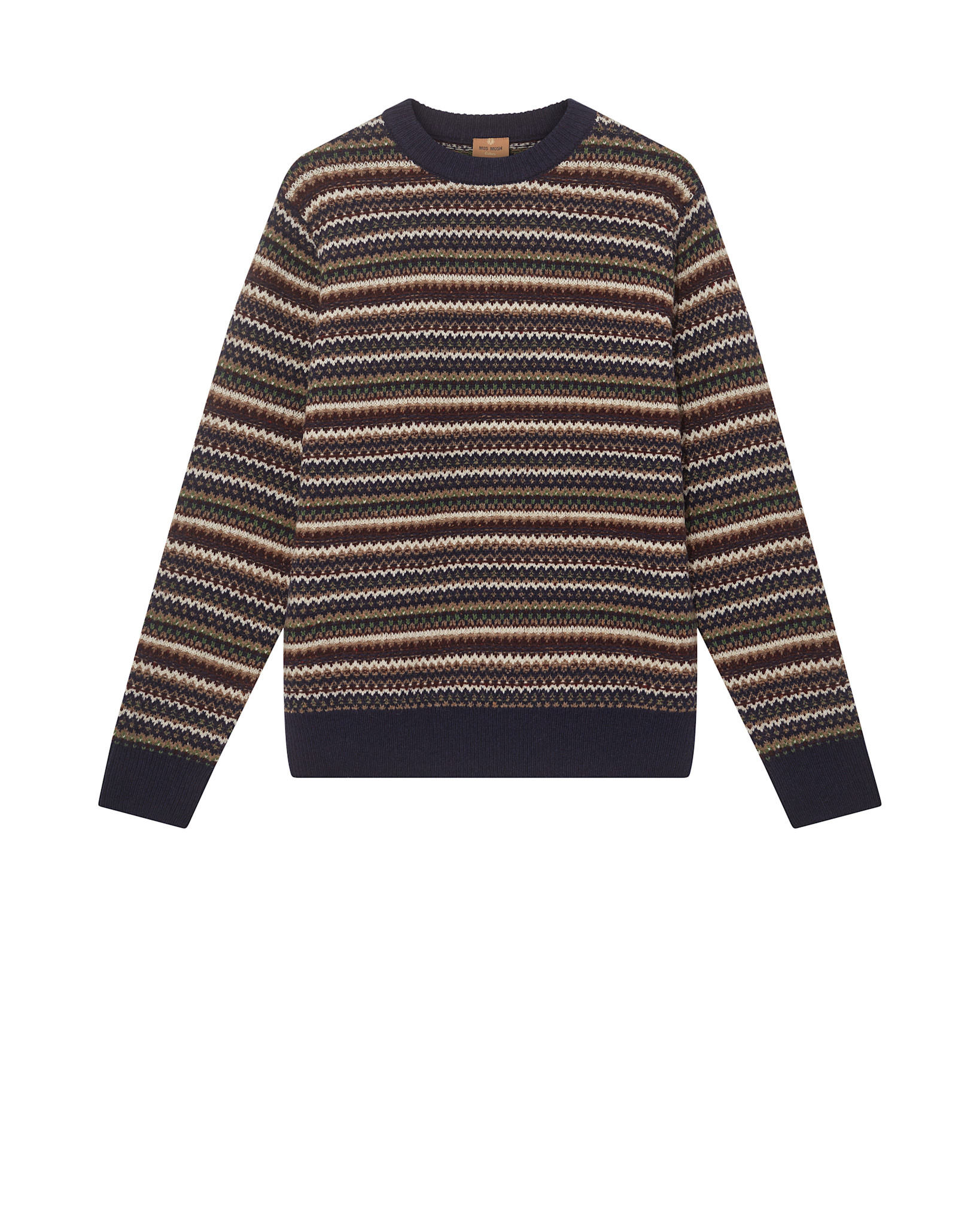 Tricot Mos Mosh Gallery Laporte tissé bleu marine, bordeaux & vert multi