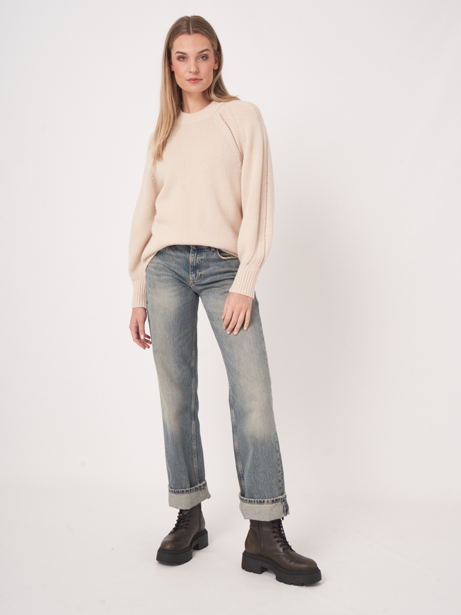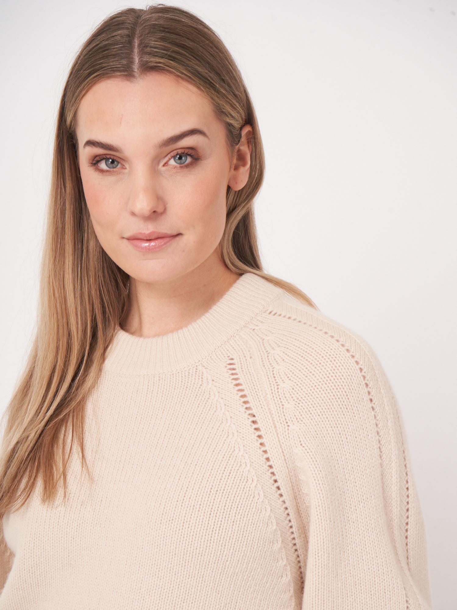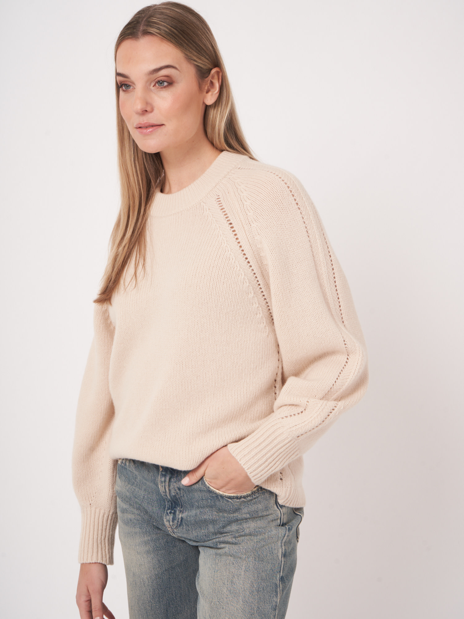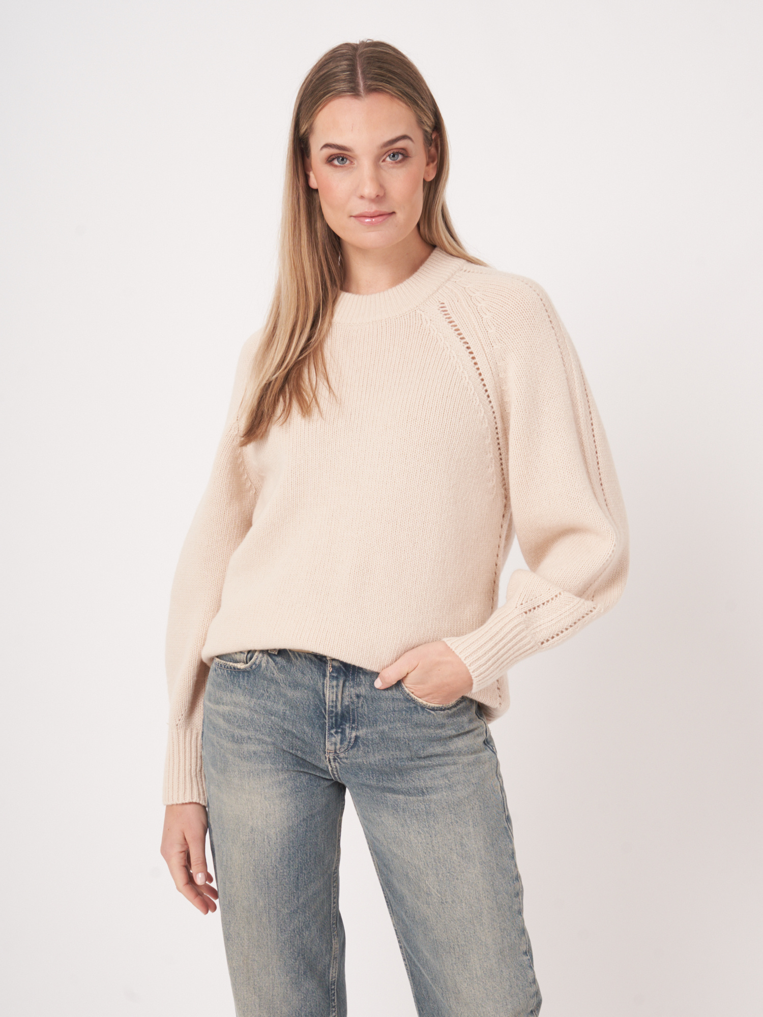Tricot Repeat à manches raglans à maille ajourée en mérinos beige naturel