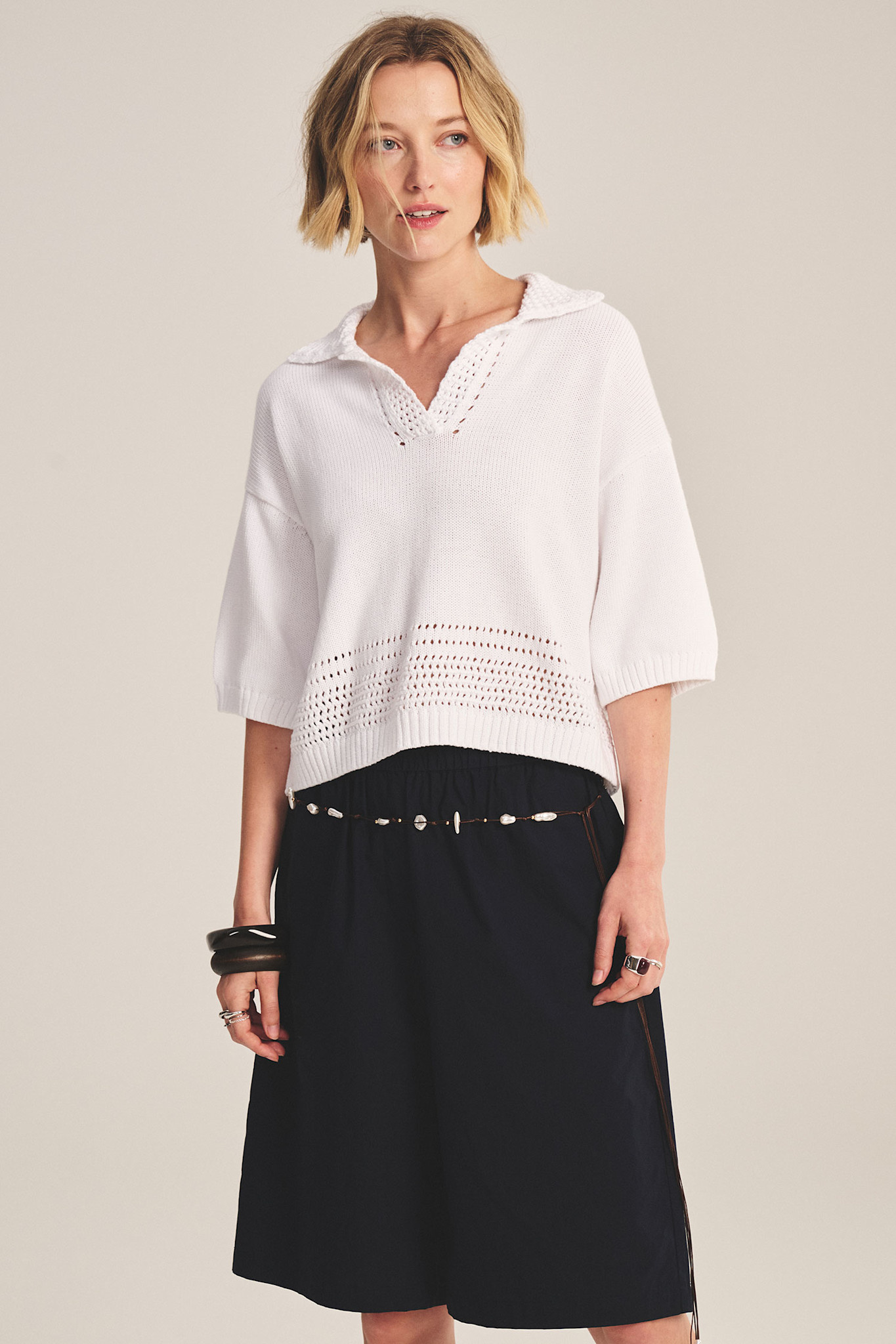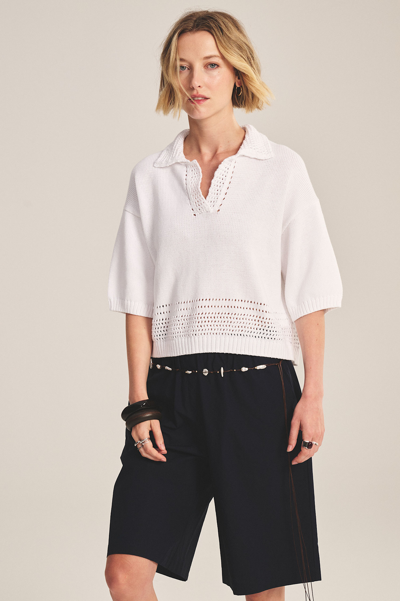 Tricot Velvet Winslow à manches courtes en coton blanc