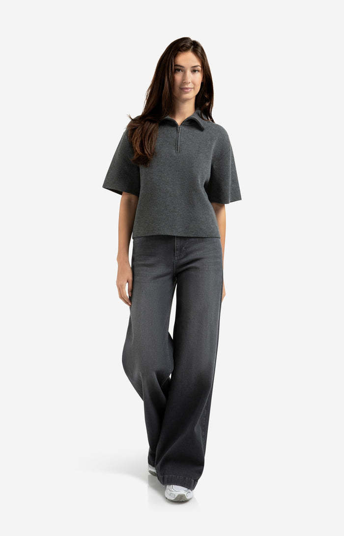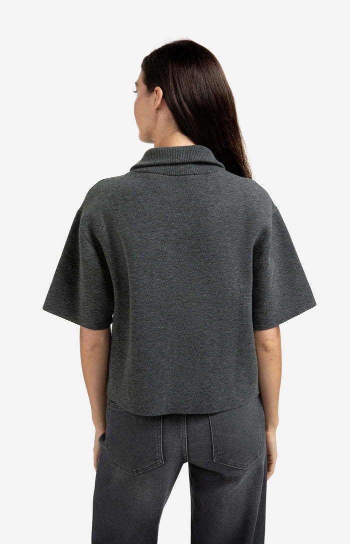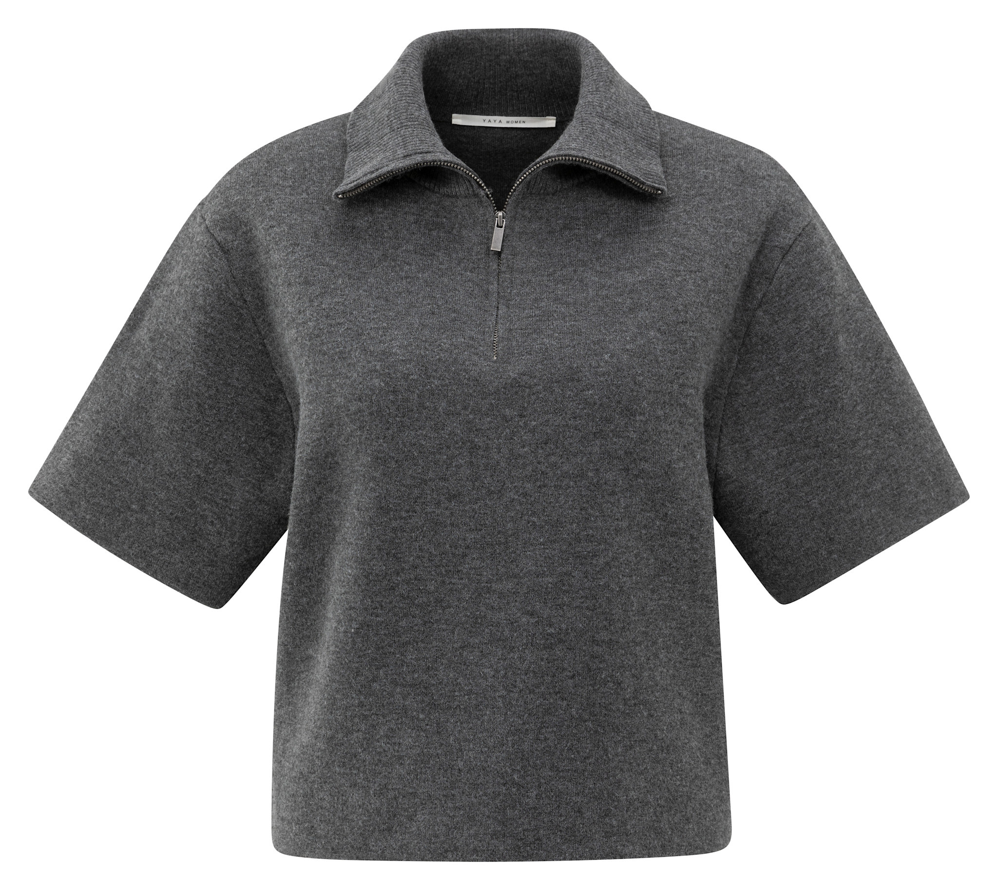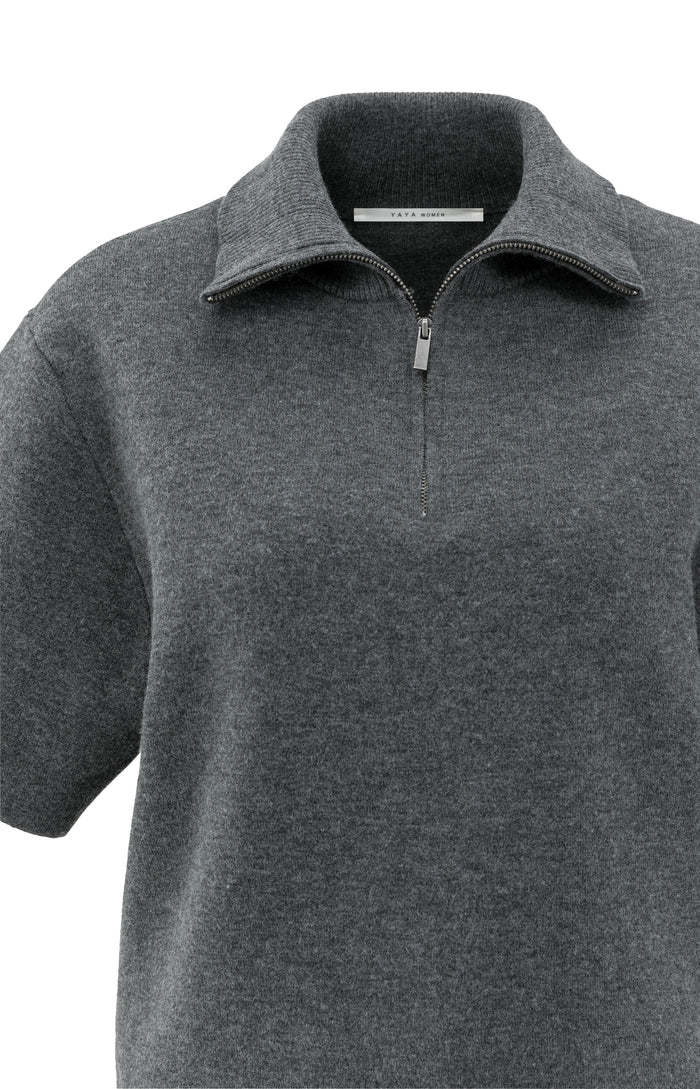 Tricot Yaya à col montant à zip à manches courtes gris charcoal