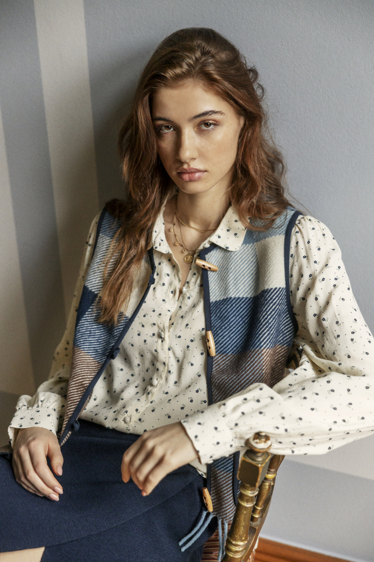 • Motif à carreaux et à rayures : bleu marine, bleu pâle et brun chocolat