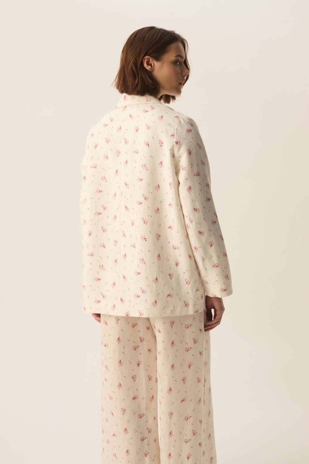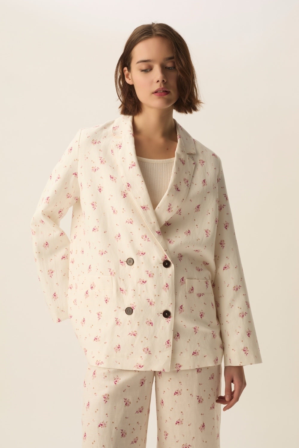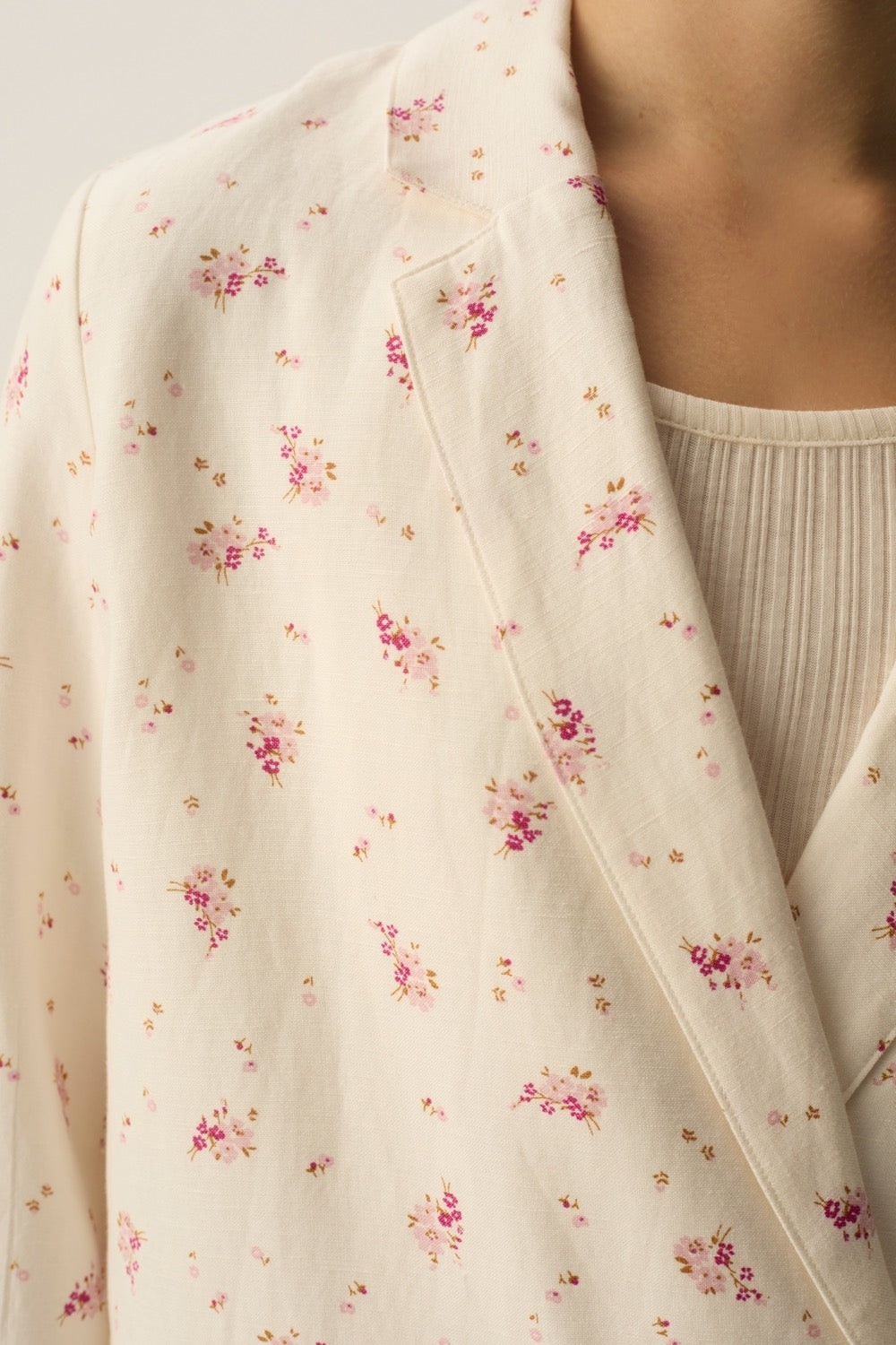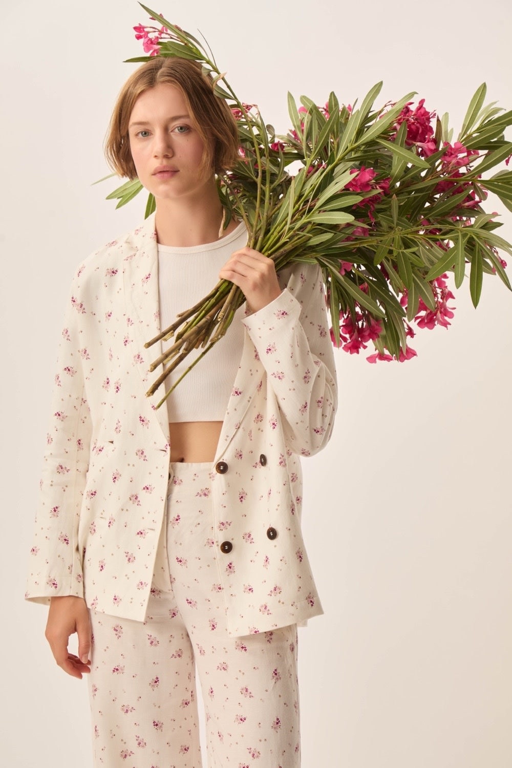 Veston Des Petits Hauts Simeone écru à petites fleurs rose Alizée