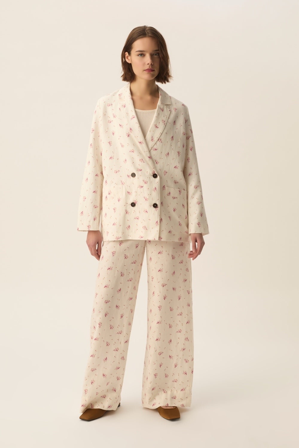 Pantalon Des Petits Hauts Tiffaine écru à petites fleurs rose Alizée
